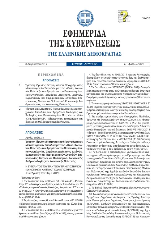- Αντίγραφο μεταπτυχιακού τίτλου (εάν υπάρχει).